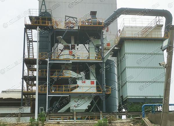 原料經(jīng)過電子秤進(jìn)入到皮帶輸送機(jī)中,由全封閉的提升機(jī)將物料入到五孔碾磨制砂機(jī)內(nèi)進(jìn)行破碎處理,再由空氣篩對破碎后的物料進(jìn)行篩分、選粉處理,篩分后的較大物料會(huì)返回五孔碾磨制砂機(jī)中進(jìn)行二次破碎,符合要求的砂子則由傳送帶輸送至成品倉中;篩分過程中的粉塵會(huì)經(jīng)粗細(xì)粉分離機(jī)進(jìn)入到布袋收塵器內(nèi),而其中較大的粗顆粒會(huì)在粗細(xì)粉分離機(jī)的作用下,按需求在成品砂中進(jìn)行回?fù)?,?xì)粉塵將通過風(fēng)力進(jìn)入到布袋收塵器,作為副產(chǎn)品進(jìn)行使用。